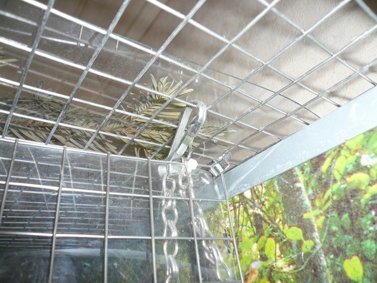 Gitterfläche an der Volierendecke befestigt